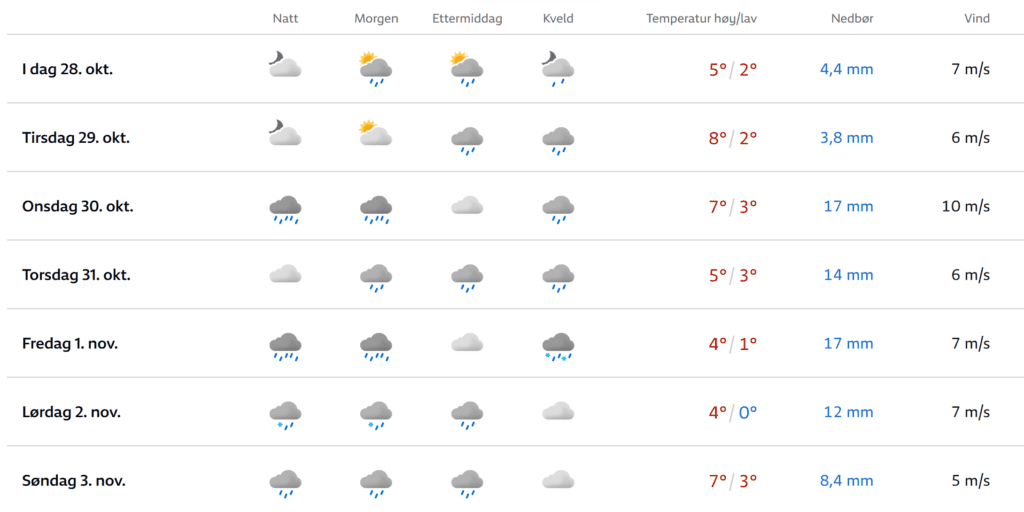 – Tirsdag er vel ukens mildeste dag. Da er 8-9 grader innenfor rekkevidde, sier statsmeteorologen.