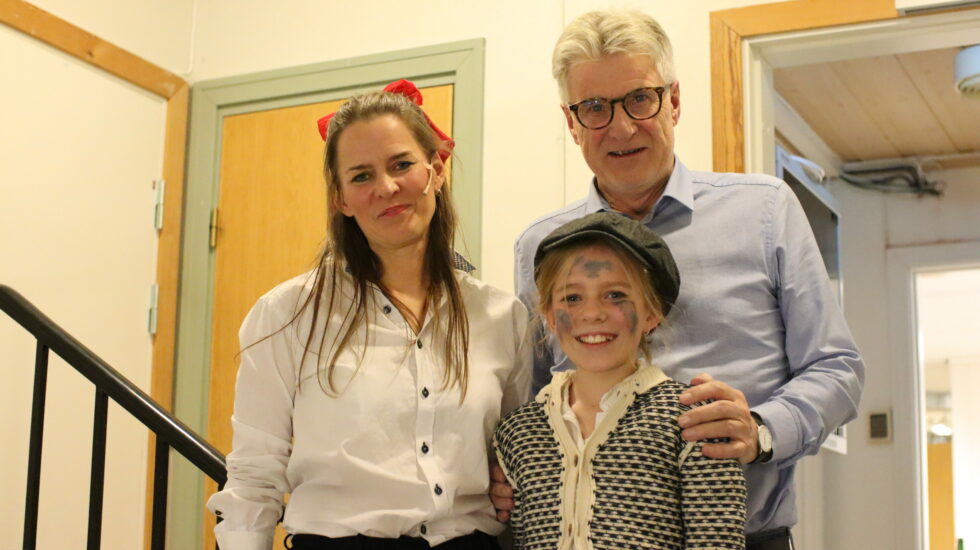 Elisabeth Leirvik Rabben (44) sammen med datter Maja Rabben Stuevold (10) og svigerfar Trygve Stuevold (76). – Dette er det artigste som fins, stort at vi kan skape dette sammen med ulike generasjoner i samme forestilling. Foto: Steinar Johnsen